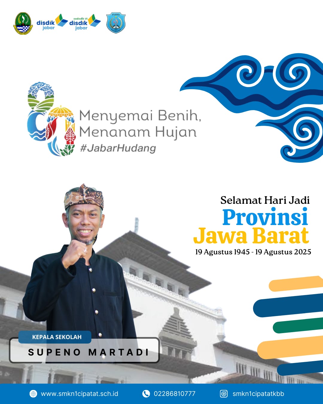 SMKN 1 Cipatat mengucapkan Selamat Ulang Tahun ke-80 untuk Provinsi Jawa Barat tercinta yang diperingati pada 19 Agustus 2...
