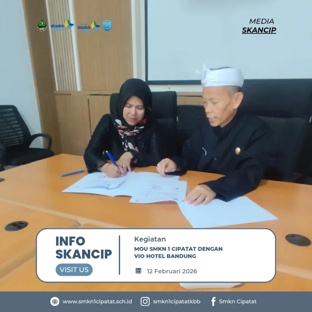 Cipatat, 12 Februari 2026 – Dalam upaya terus meningkatkan kualitas lulusan yang siap kerja dan relevan dengan kebutuhan industri, SMKN 1 Cipatat resmi menandatangani Nota Kesepahaman (Memorandum of Understanding) dengan VIO Hotel Bandung. Penandatanganan MoU ini menjadi langkah nyata sekolah dalam memperluas jejaring kemitraan, khususnya di sektor pariwisata dan perhotelan. Kerjasama ini mencakup berbagai poin […]