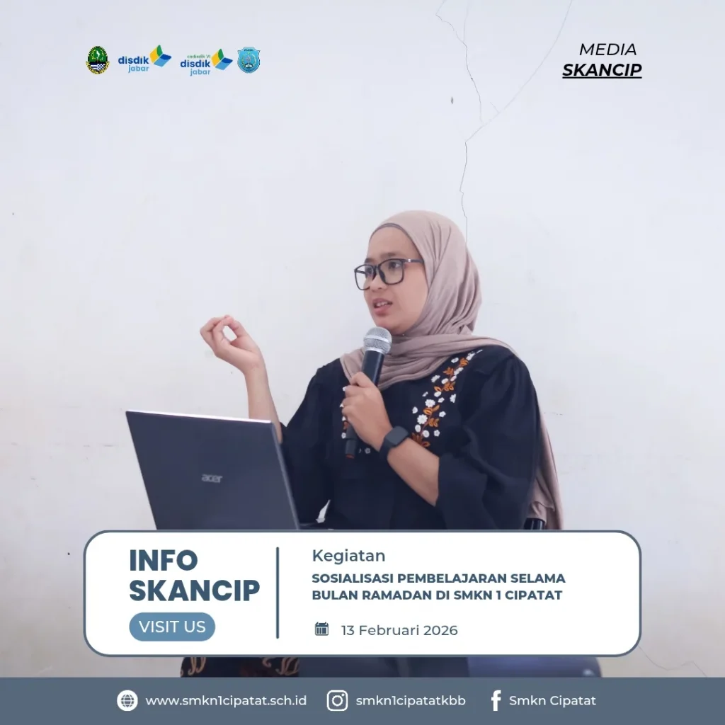 Cipatat (13/02/2026) – Menjelang datangnya bulan suci Ramadhan 1447 H, Tim Kurikulum dan Kesiswaan SMKN 1 Cipatat secara resmi menggelar sosialisasi terkait penyesuaian Kegiatan Belajar Mengajar (KBM). Sosialisasi ini merujuk pada Surat Pemberitahuan Nomor: 103/TU.03/SMKN1CPT/2026 yang dikeluarkan pada Jumat, 13 Februari 2026. Perubahan jadwal ini dilakukan untuk menghormati kekhusyukan ibadah puasa sekaligus memastikan proses pendidikan […]
