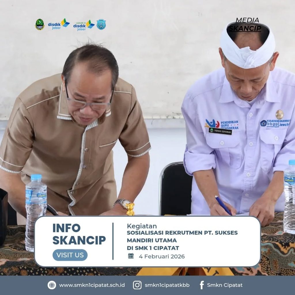 CIPATAT – SMKN 1 Cipatat kembali membuktikan komitmennya dalam mencetak lulusan yang siap kerja dan berdaya saing global. Pada Selasa (04/02/2026), sekolah menggelar kegiatan Sosialisasi Rekrutmen sekaligus Penandatanganan Nota Kesepahaman (MoU) bersama PT Sukses Mandiri Utama. Acara yang berlangsung di aula SMKN 1 Cipatat ini dihadiri oleh Kepala Sekolah, Tim Humas Hubin, perwakilan industri, serta […]