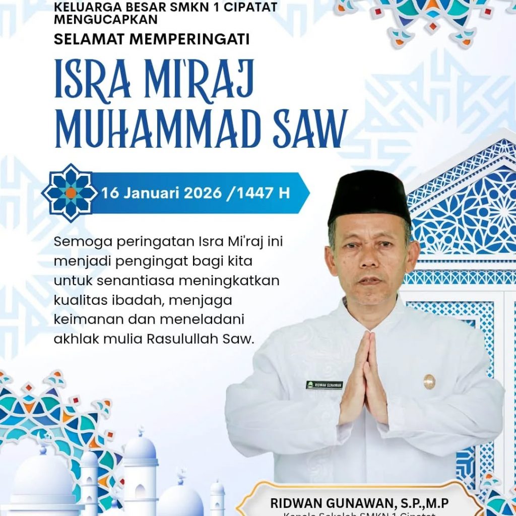 Cipatat, 16 Januari 2026 – Keluarga Besar SMKN 1 Cipatat mengucapkan selamat memperingati Isra Mi’raj Nabi Muhammad SAW, 27 Rajab 1447 H. Peristiwa Isra Mi’raj adalah salah satu mukjizat agung dalam sejarah Islam, di mana Rasulullah SAW melakukan perjalanan spiritual yang luar biasa. Bagi kita, momen ini bukan sekadar peringatan tahunan, melainkan pengingat penting untuk […]