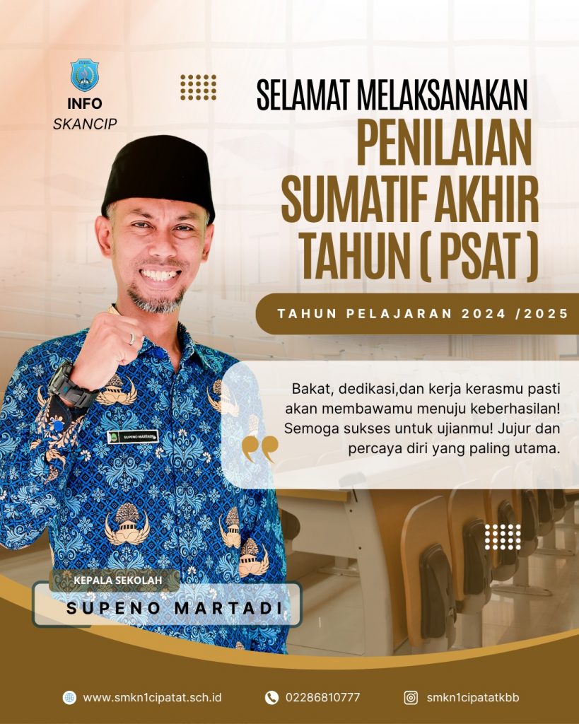 SMKN 1 Cipatat, Juni 2025 — Menjelang akhir tahun pelajaran 2024/2025, SMKN 1 Cipatat melaksanakan Penilaian Sumatif Akhir Tahun (PSAT) bagi seluruh siswa kelas X dan XI sebagai bagian dari proses evaluasi capaian pembelajaran. Kegiatan ini dilaksanakan mulai tanggal 2 Juni 2025 hingga 5 Juni 2025 secara daring melalui Learning Management System (LMS) sekolah. Pemanfaatan […]