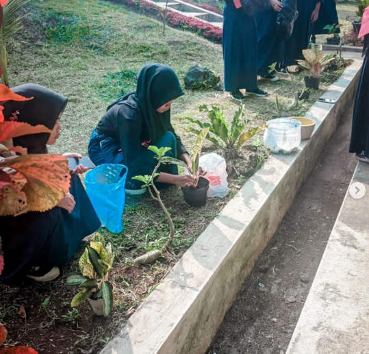 Tidak berhenti di situ, murid juga melakukan penanaman pohon di area yang telah ditentukan sebagai zona hijau sekolah. Beberapa jenis pohon dan tanaman hias yang dibawa dari rumah masing-masing ditanam dan dirawat bersama, sebagai simbol komitmen mereka menjaga kelestarian lingkungan sekolah. Tanaman dalam pot yang dibawa oleh murid disusun dan ditata secara estetik di beberapa titik strategis halaman sekolah sebagai bagian dari penataan lingkungan.